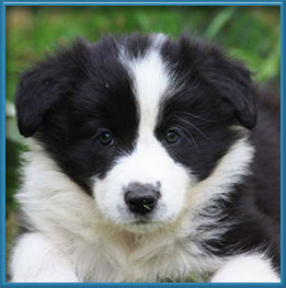 Es sind 4 Hündinen und 3 Rüden, klassisch in schwarz-weiß.